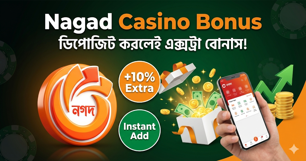 Nagad Casino Bonus: নগদ অ্যাপ ব্যবহার করে ডিপোজিট করলে এক্সট্রা বোনাস পাওয়ার কৌশল
